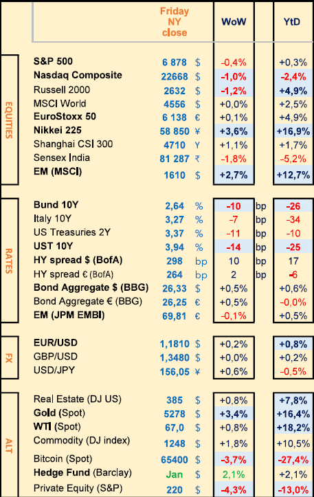 - Everyone is talking about the UBS report on private credit risks, together with the AI impact onto the software industry. The previous has sent shivers in the PE and private credit markets last week, the latter has continued to impact Tech stocks altogether
