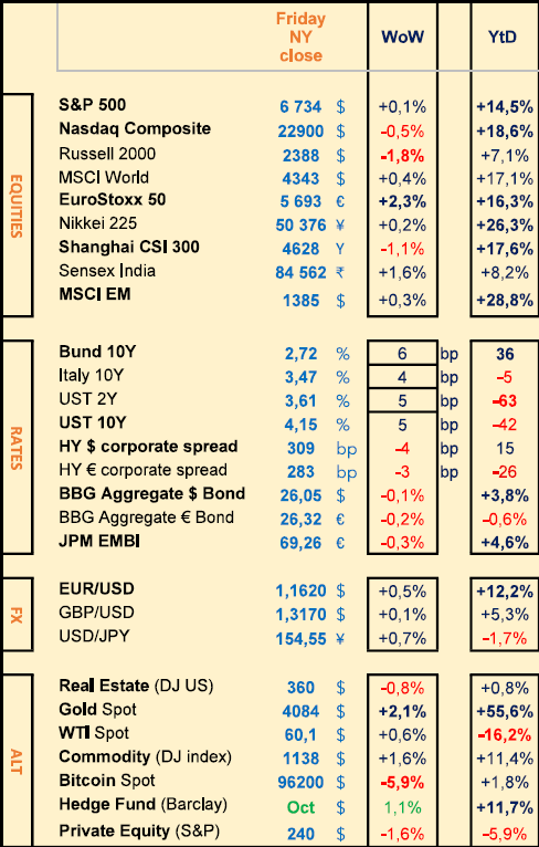 · If, in the United States, the US Federal Reserve's interest rate cuts do not materialise as expected, or if high investments in artificial intelligence do not lead to the hoped-for increases in productivity, this could put pressure on US stock markets, which are currently trading at very high valuations.